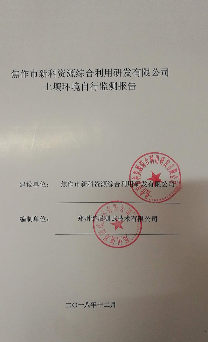 點擊后面鏈接在線查看更多詳情:焦作市新科資源綜合利用研發(fā)有限公司土壤自檢報告.pdf